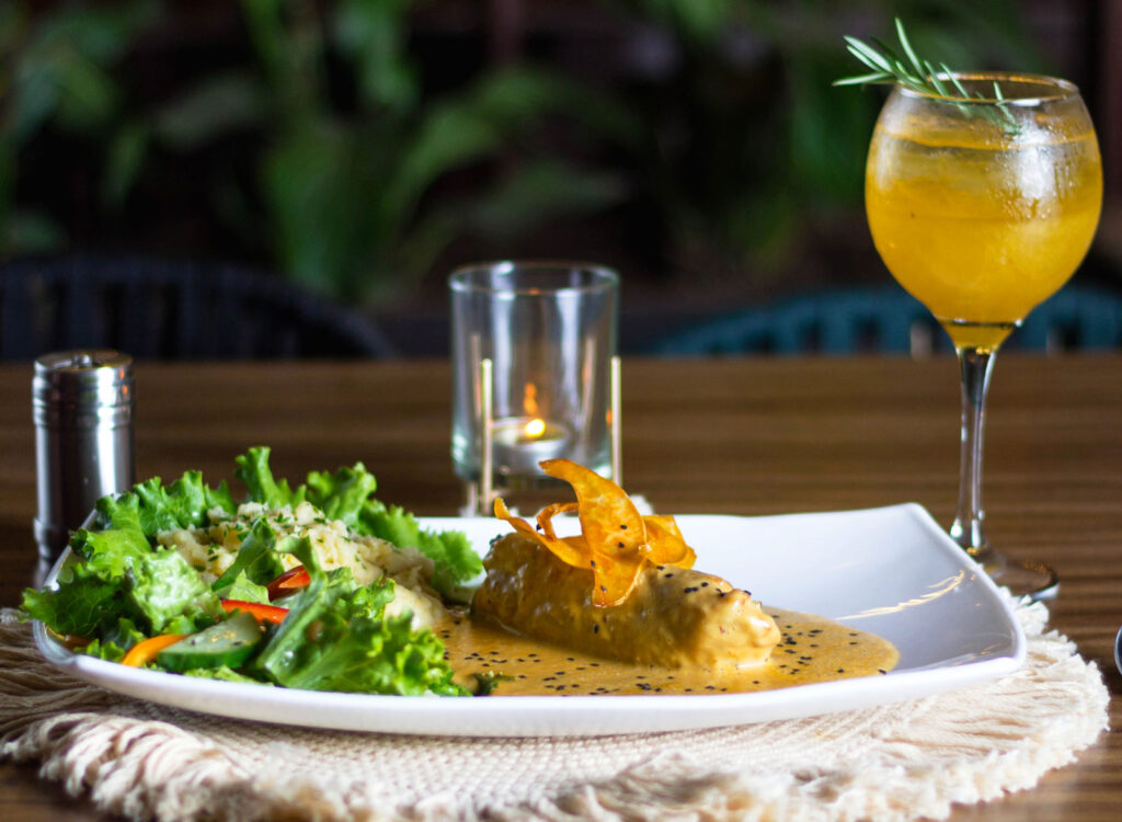 PECHUGA RELLENA EN SALSA DE MANGO $250